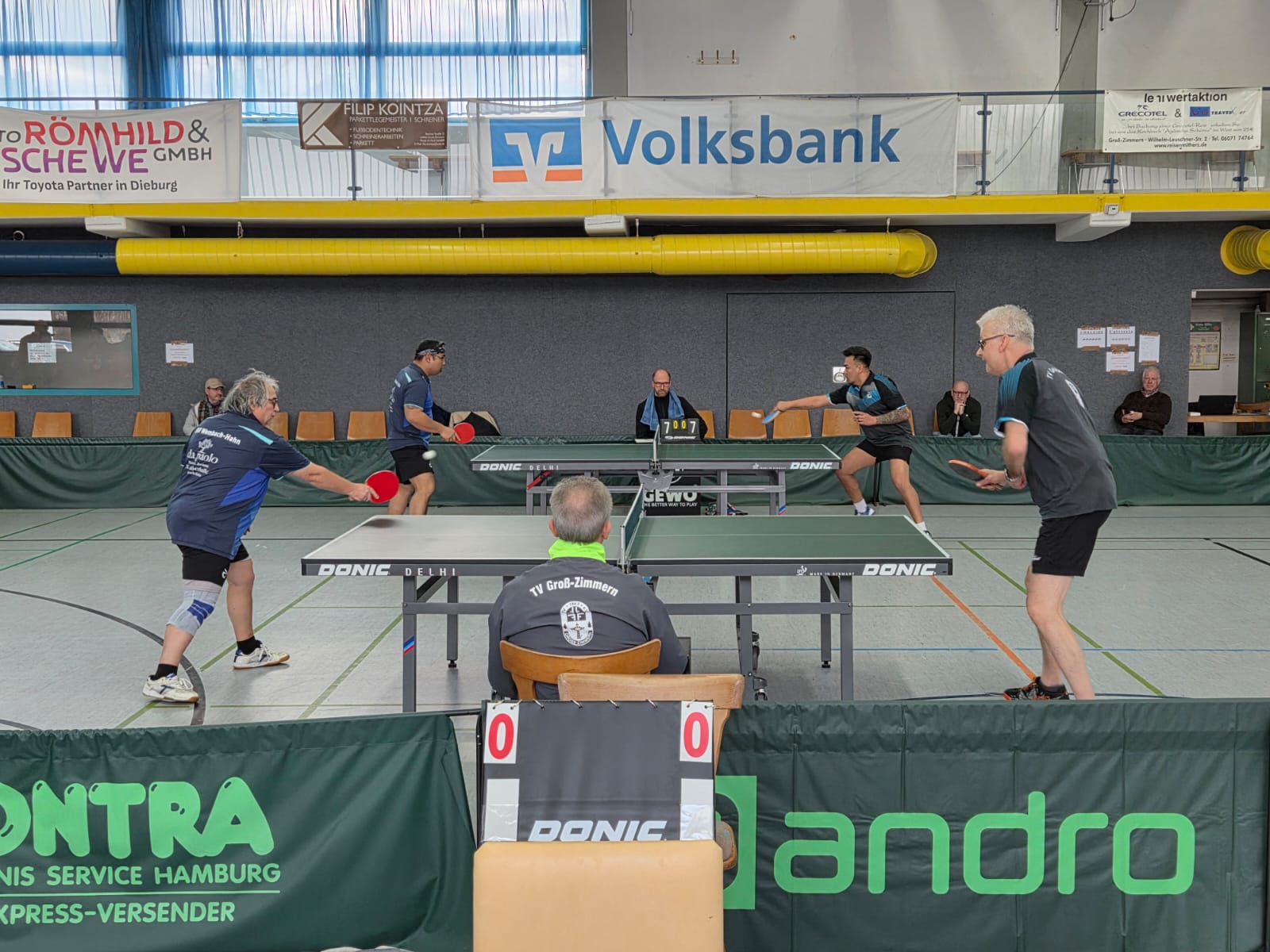Auch dieses Jahr hat die Tischtennis-Abteilung des TV Groß-Zimmern wieder den Zuschlag zur Ausrichtung der Kreispokal-Endrunde erhalten. Am Sonntag, den 15.02.2026 wurden die Halbfinal- und Final-Spiele in der Kreisliga sowie den Kreisklassen 1-3 ausgetragen. Die ERSTE Mannschaft des TV Groß-Zimmern war diesmal auch mit dabei (mit Tien Nguyen, Dirk Nottarp, Wolfgang Bärtl, Michael Wieden) und traf im Halbfinale der 2.Kreisklasse auf den TTC Eppertshausen VI, welcher mit 4:3 besiegt werden konnte! Das Finale fand direkt im Anschluss statt und die 1.Mannschaft der SKG Wembach-Hahn war der Gegner (4:3 gegen TuS Griesheim III). Diese Mannschaft war dann aber leider zu stark, das Spiel ging 1:4 verloren und die ERSTE wurde nur „zweiter Sieger“. Aber immerhin: FINALE…