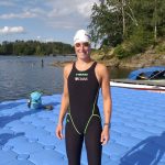 Die Landschaft, der See, das Wasser und Wetter war so klasse, dass ich total geflasht war und einfach nur zügig geschwommen bin, ohne nachzudenken, ob ich das Tempo auch bis zum Schluss halten könnte. Ich habe es total genossen, die Ufer-Szenerie an mir vorbei gleiten zu sehen. Start war rolling Start. Ich habe also immer jemanden vor mir im Blickfeld gehabt und konnte irgendwann überholen, oder irgendwann dann halt nicht mehr überholen. Die letzten 3 km war am härtesten. Erstens Akku alle und zweitens kamen die schnellsten der 7km Schwimmer von hinten angerauscht. Ich habe sie kommen sehen und wollte auf den letzen km nicht mehr überholt werden. Nur eine Schwimmerin hat mich überholt, den Rest der 7km habe ich bis Zielanschlag hinter mir halten können.