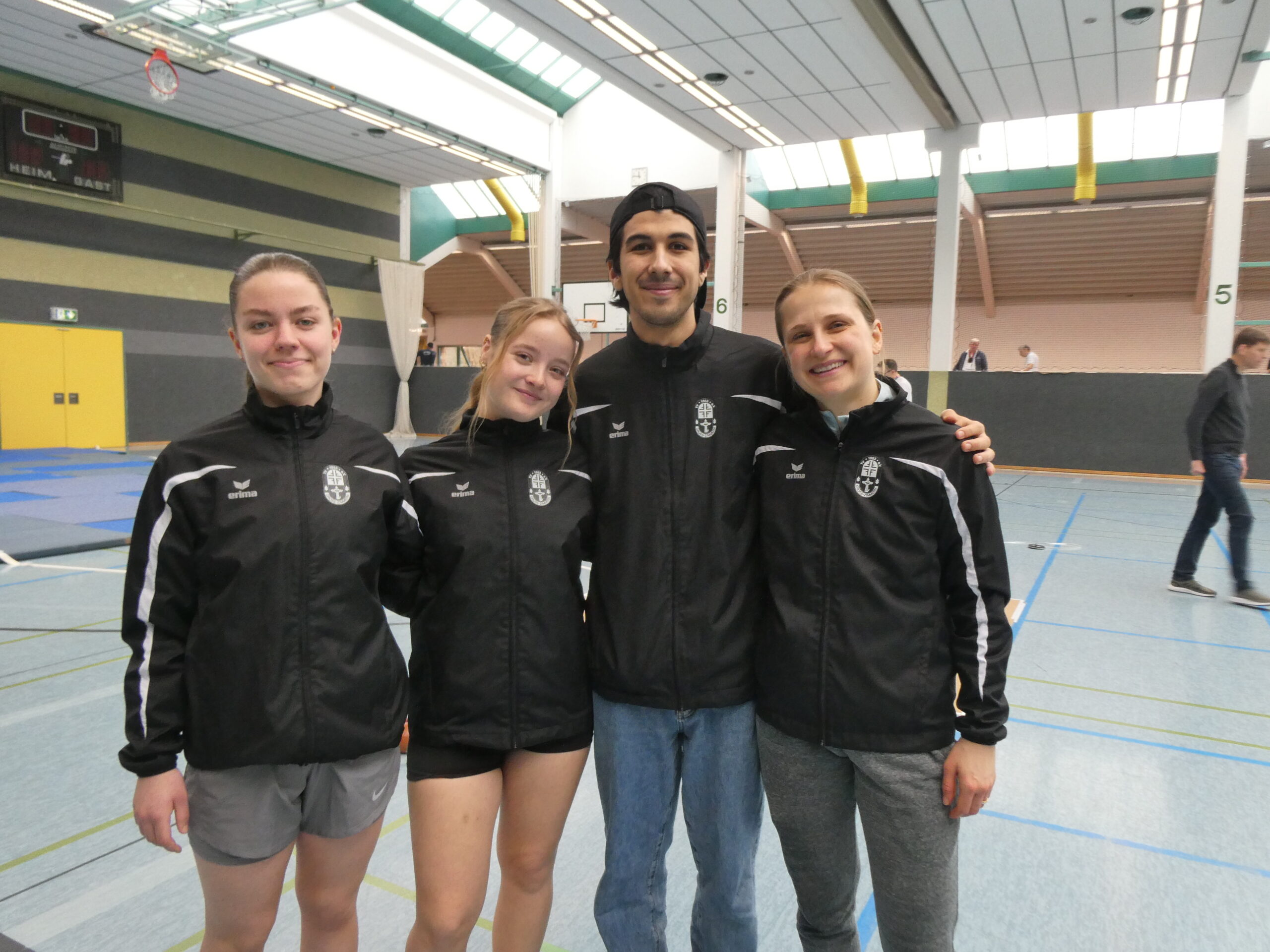 Auf dem Bild sind zu sehen von links nach rechts Alexia Breitwieser, Lara Wadewitz, Trainer Ege Aykanat sowie Vanessa Galinski.